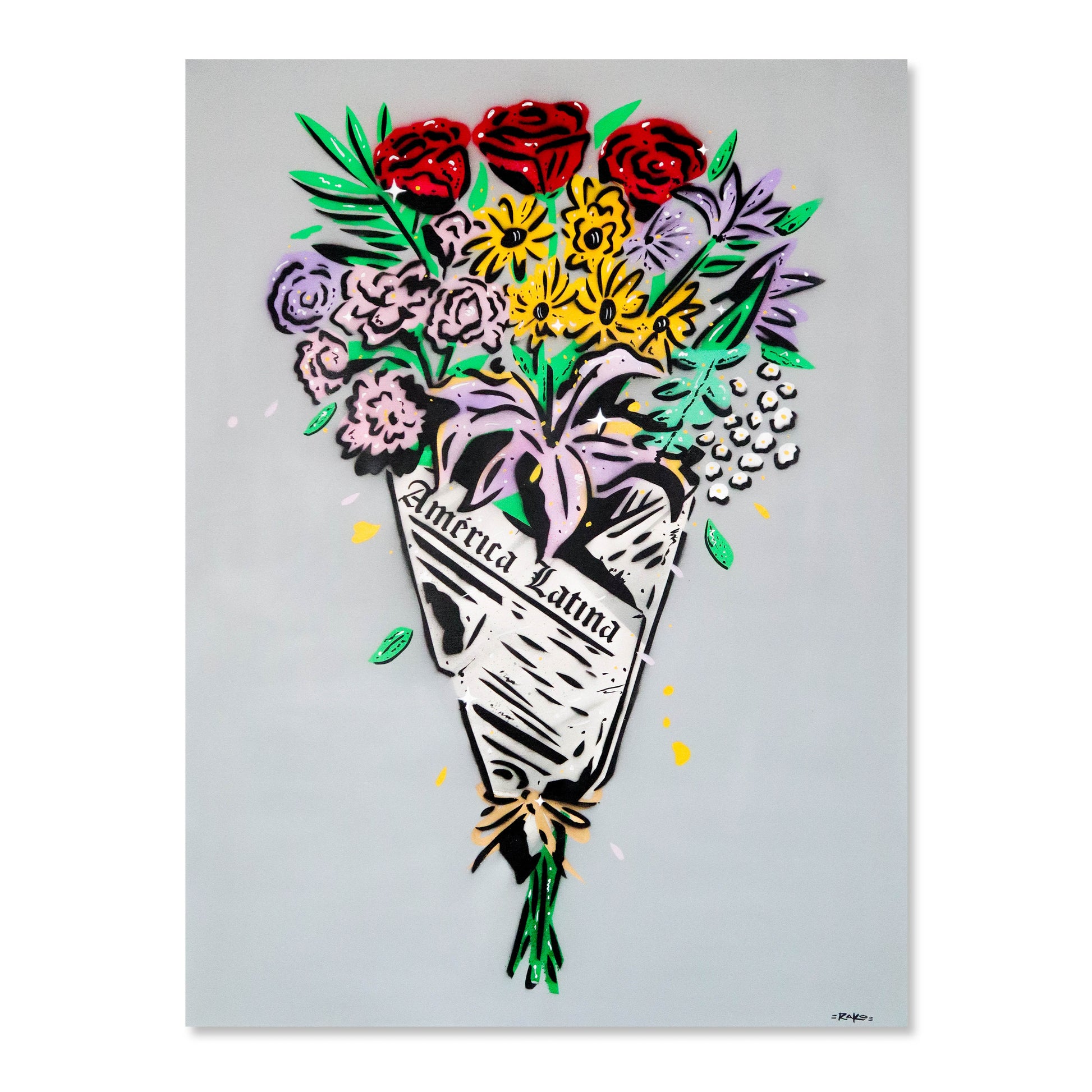 Arte pintado con spray usando técnica de stencil sobre canvas. Tamaño 90 cm x 120 cm.