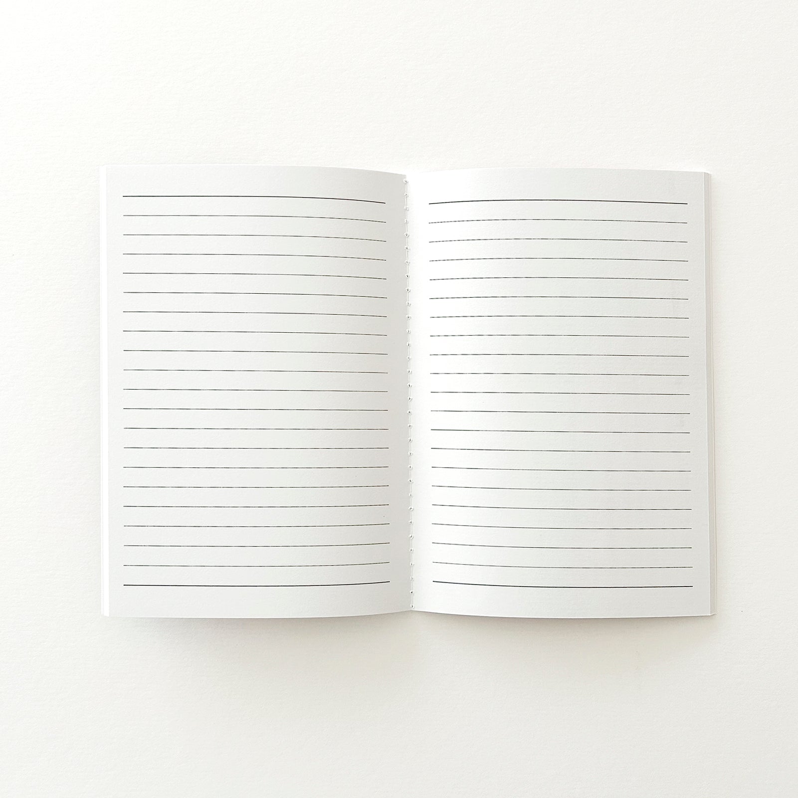 Libreta cocida al lomo de 80 páginas. Hojas con líneas color crema. Tamaño 5.5"x8.5" pulgadas.